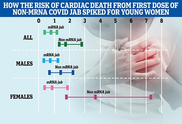 The data shows that women aged between 12 - 29 years were 3.5 times more likely to die from cardiac related illnesses if they had been vaccinated with the AstaZeneca vaccine.