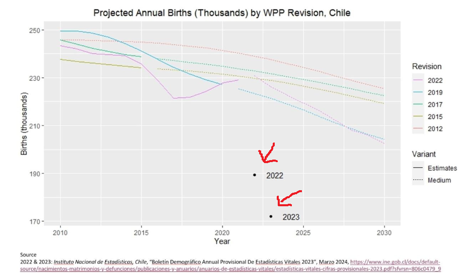 Take for example Chile. Look at how far below the UN estimates, the plotted 2022 and 2023 totals are.