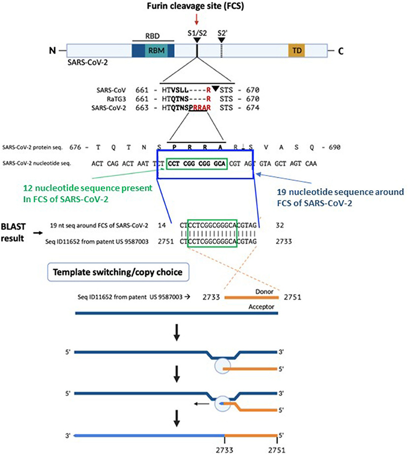 The paper states that the absence of the sequence from the BLAST database makes recombination in an intermediate host an unlikely explanation for its presence in SARS-CoV-2. They concluded by saying “The presence in SARS-CoV-2 of a 19-nucleotide RNA sequence encoding an FCS at amino acid 681 of its spike protein with 100% identity to the reverse complement of a proprietary MSH3 mRNA sequence is highly unusual. Potential explanations for this correlation should be further investigated”.