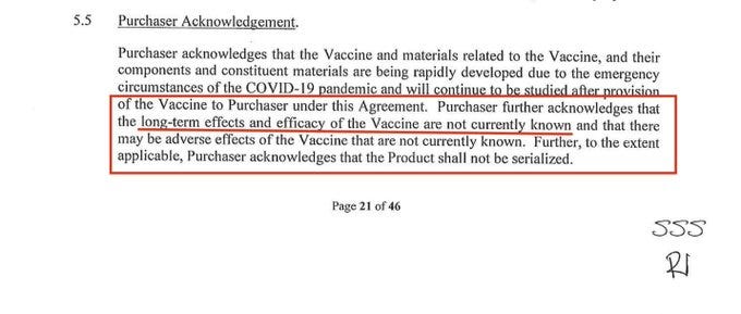 Leaked Pfizer Contract Admits There May Be Adverse Effects
