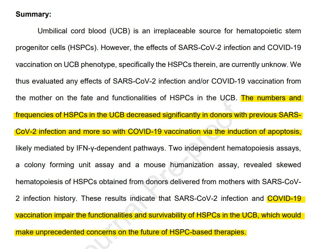 Throughout the paper, they often stress that their data indicates that BOTH natural infection and vaccination impair stem cells quantitatively and qualitatively, however, dig into the finer details and it is clear, vaccination is far worse.