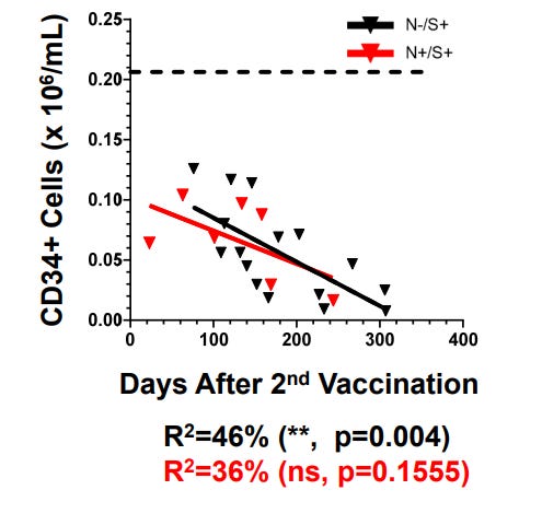 And equally concerning, the reduction in stem cells after vaccination seemed to continue at the same pace until it reached zero.