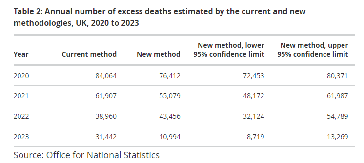 This new method means the number of excess deaths in 2023 has dropped from 31,442 to 10,994. Some have suggested that this is a convenient way to hide excess deaths.