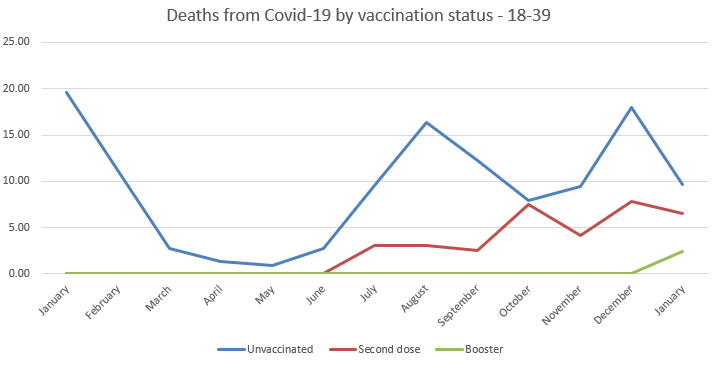 So let’s have a look at the data for 18-39 year olds. Firstly Covid-19 deaths.