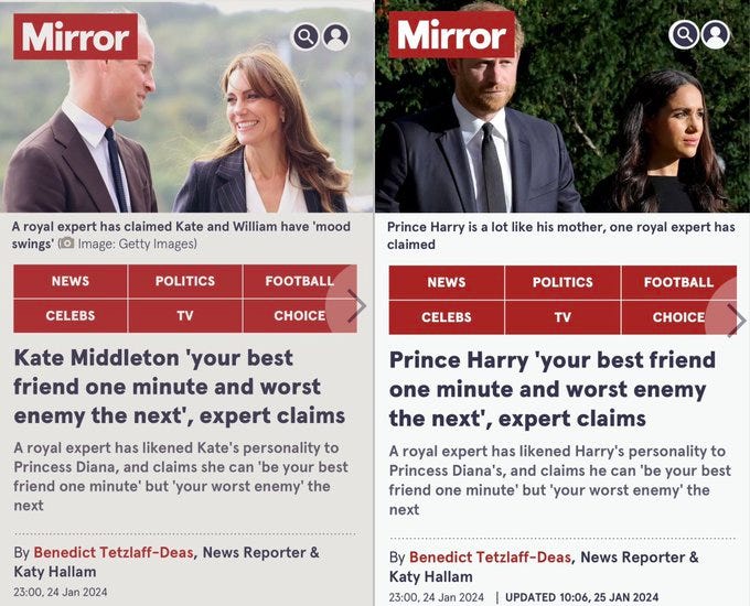 Something seems amiss with the Waleses, but I’m more struck by those side-by-side Mirror articles. How could they change the article to a new subject, but keep everything else, including a quote? That’s like literally a science fiction trope.
